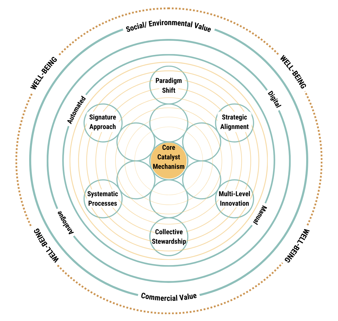 Impact Sector Catalysts know how to create a mechanism that speeds up the transformation process of organsiations and the entire sector exponentially. Instead of pushing harder or trying to convince people, they lower the barriers to change. They understand leverage points and develop solutions that have impact on multiple levels - individual, organisational, and system. Impact Sector Catalysts know and use the ingredients for Catalytic Change.