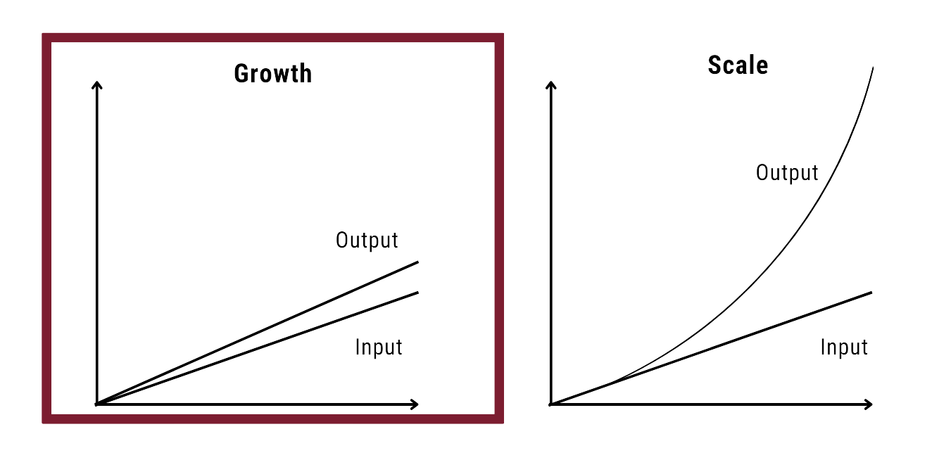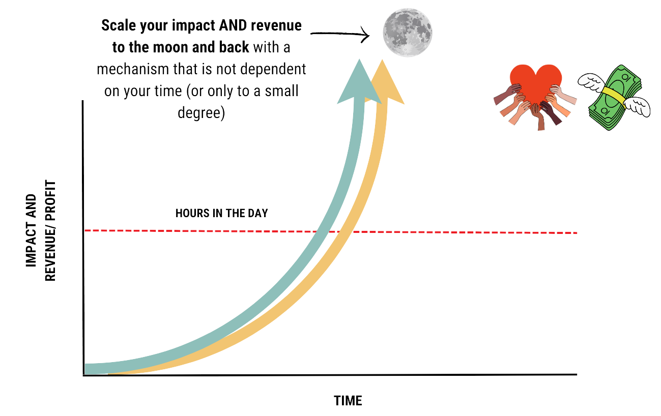 Designing for the scalability of both - impact and revenue/ profit - allows for large-scale change, even with a small team and little support. It decouples your outcomes from your time and number of people.