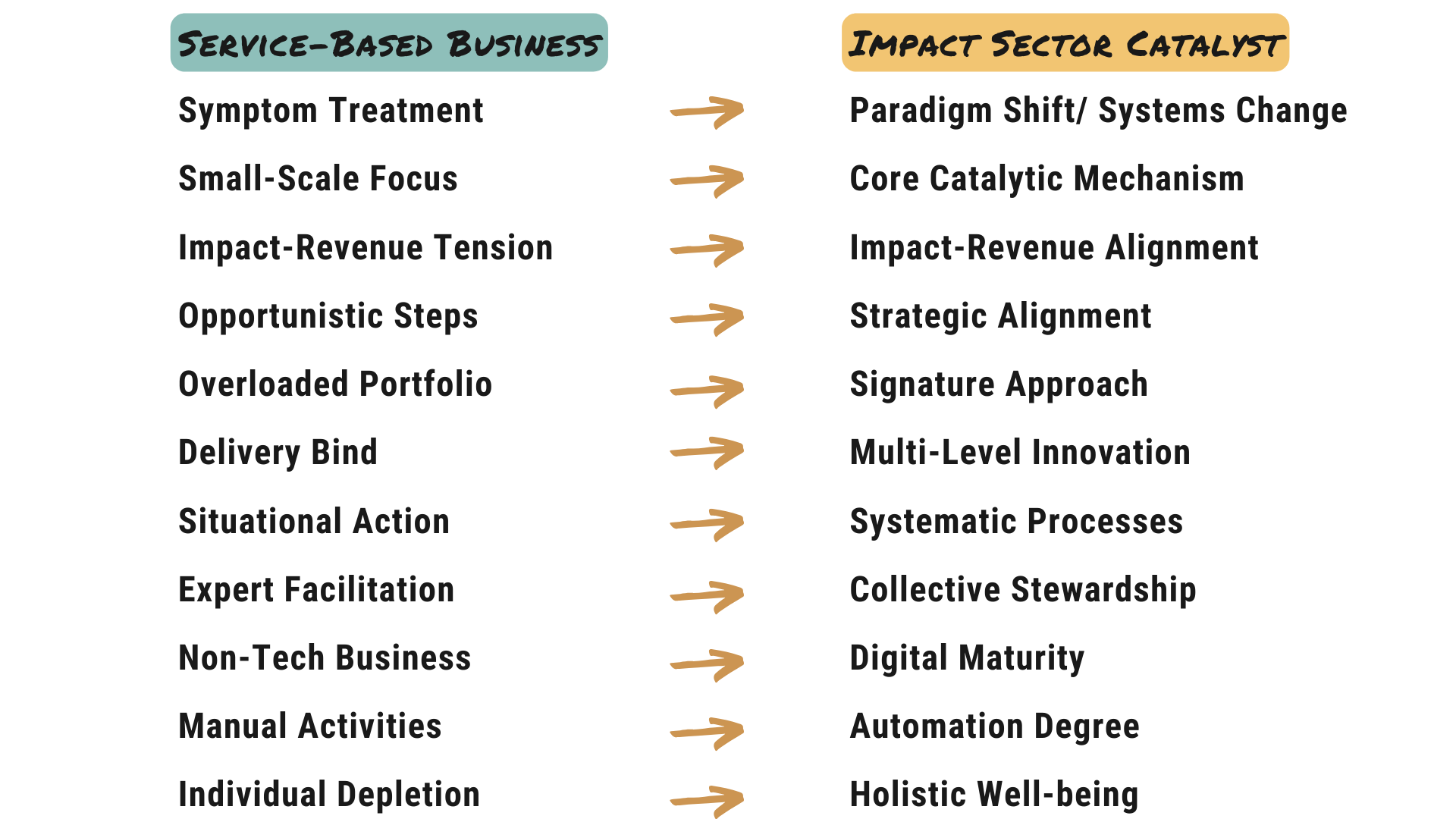 It requires a development from 'traditional' service-based business to becoming an Impact Sector Catalyst.